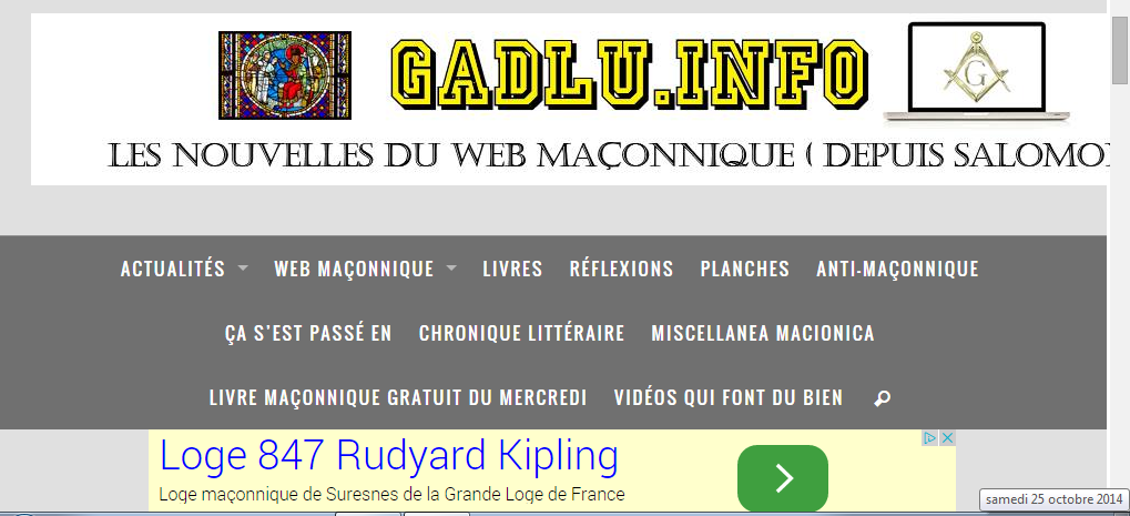 Beaucoup d'entre nous l'on déjà vu défiler sur leur écran : une publicité pour une loge. En cliquant sur l'annonce (allons courage!), vous vous trouverez sur le site de la loge, Rudyard Kipling n°847 de la GLDF.