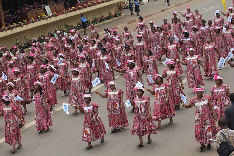 Les photographies, illustrant cet article, sont les défilés de la Journée Internationale des Droits des femmes, du 8 mars, ayant lieu au Cameroun. Chaque année, un pagne et une couleur sont adoptés. Voici pour 2018, un article présentant son organisation. La vidéo qui suit est d'une artiste camerounaise citée dans cet article qui n'a rien à voir avec la franc-maçonnerie.